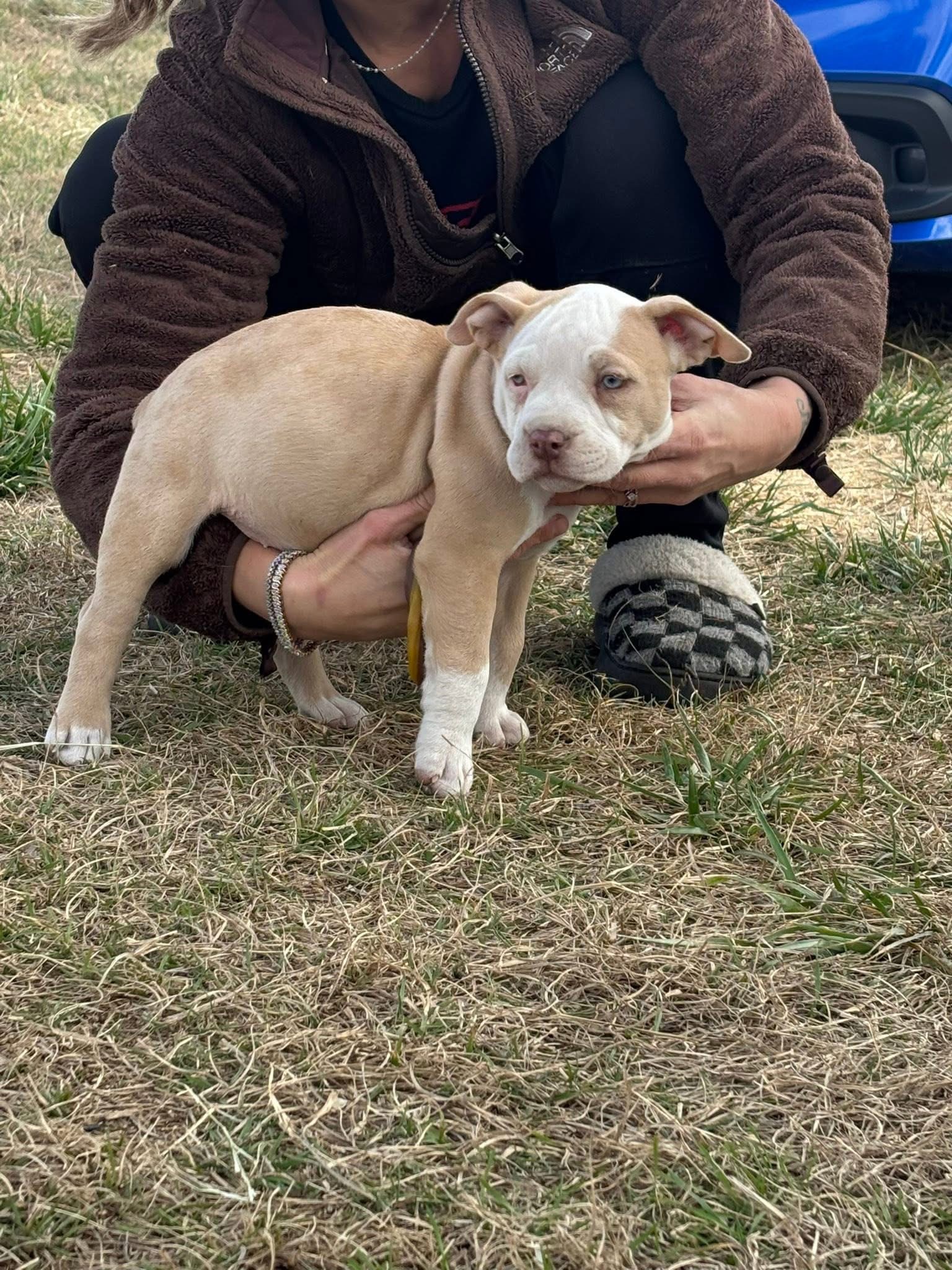 This stunning pup is the perfect blend of athletic build and sweetheart personality. Featuring a rare "lilac" (dilute chocolate) and white coat with captivating light eyes, this puppy is already showing the sturdy, muscular frame the breed is known for. Well-socialized and full of life, they would make an incredible companion for an active family or a loyal best friend for a solo owner.
