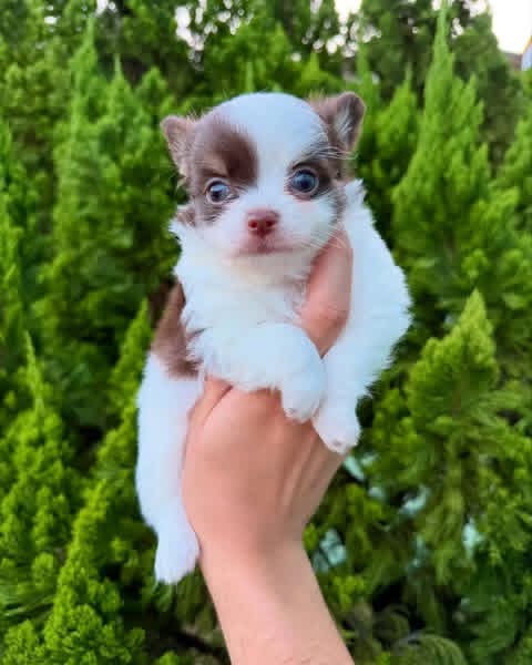 An elegant, pure-white short-haired Chihuahua with perfectly upright ears. Its classic look and clean coat make it a highly desirable companion for indoor living.