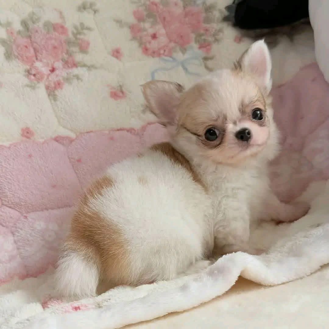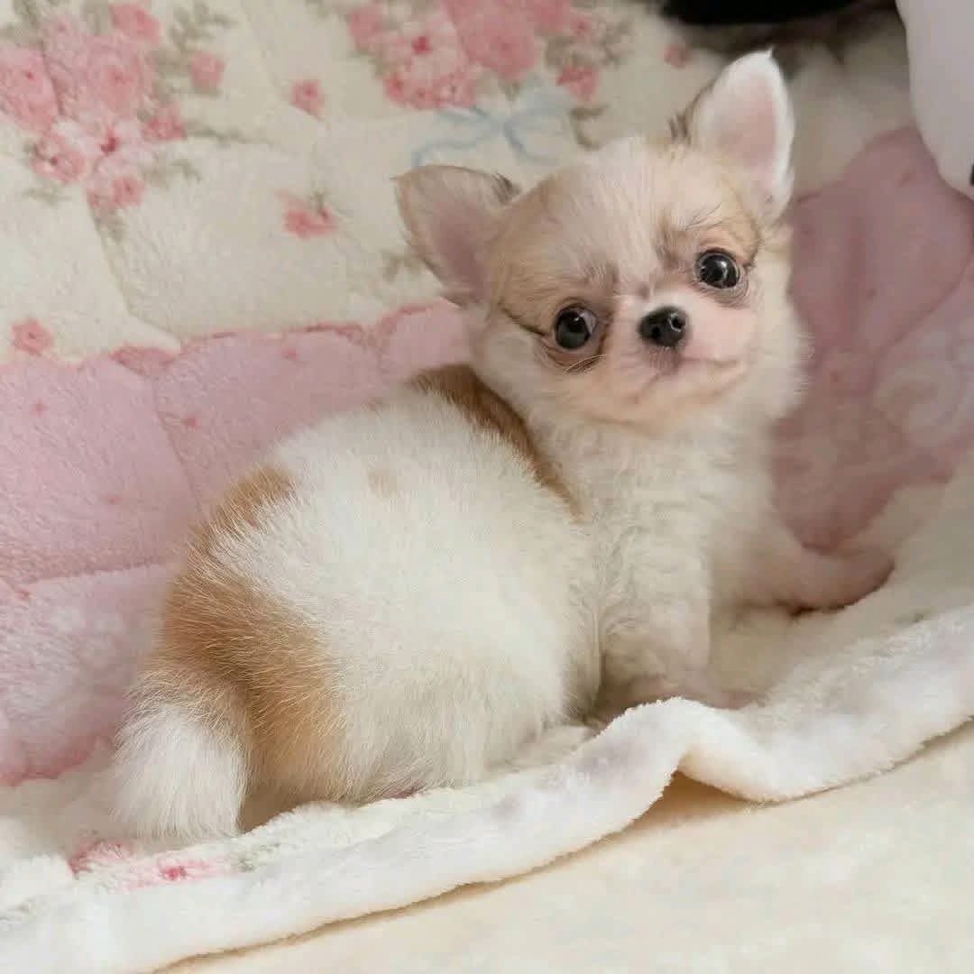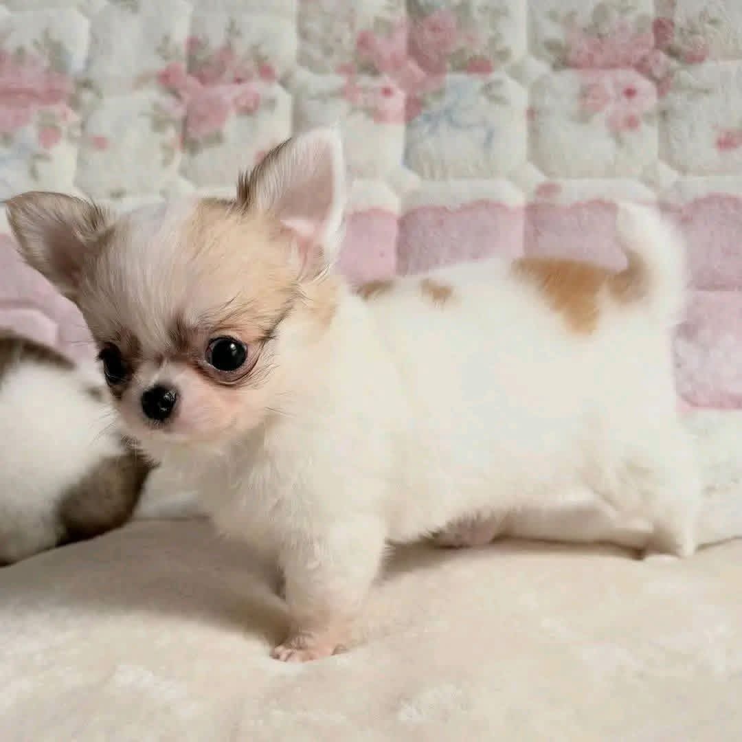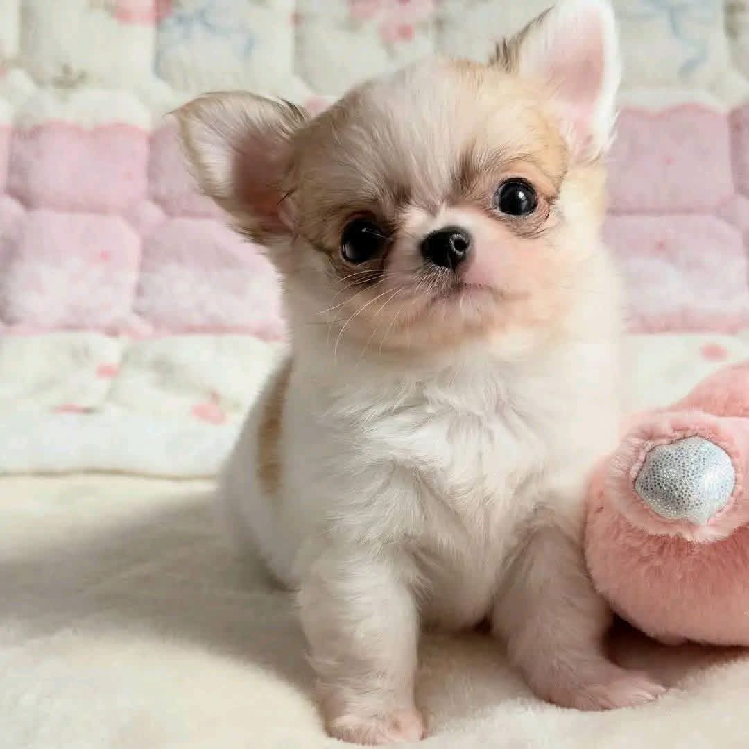 Get ready to fall in love! This precious long-haired Chihuahua puppy is the definition of "pocket-sized perfection." With a soft, cream-colored coat and striking dark eyes, this little one is as sweet-natured as they look. This puppy has the classic "apple-head" look and is already showing a playful, affectionate personality. Long-haired Chihuahuas are known for being slightly more mellow than their short-haired cousins, making them wonderful companions for those who love to cuddle.