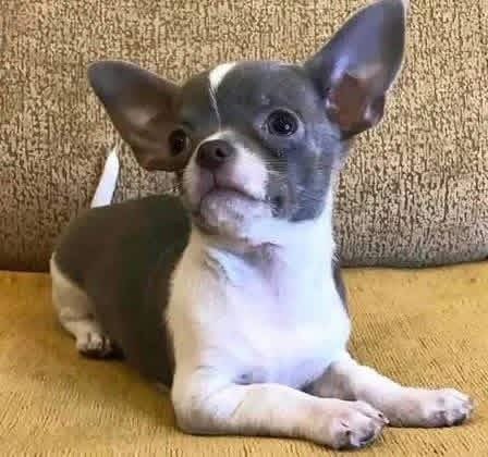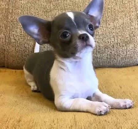 Looking for a tiny companion with a big presence? This handsome Blue and White short-haired Chihuahua is a rare find! Featuring a sleek, charcoal-grey (blue) coat with crisp white markings, this puppy is the definition of sophisticated charm. This little one is exceptionally alert and observant, already showing the classic Chihuahua trait of being a devoted "one-person" dog. With its low-maintenance coat and compact size, this puppy is ready to be your loyal sidekick for years to come.