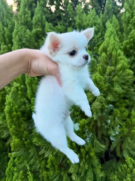 Meet this little ray of sunshine! This stunning cream short-haired Chihuahua is the perfect combination of sweet and spunky. With a beautiful white blaze and a petite, compact build, this puppy is a true breed standout. This little one is already showing a curious and affectionate personality, making them an ideal companion for someone looking for a devoted lap dog.