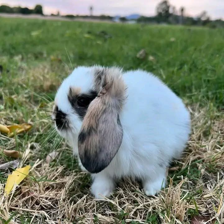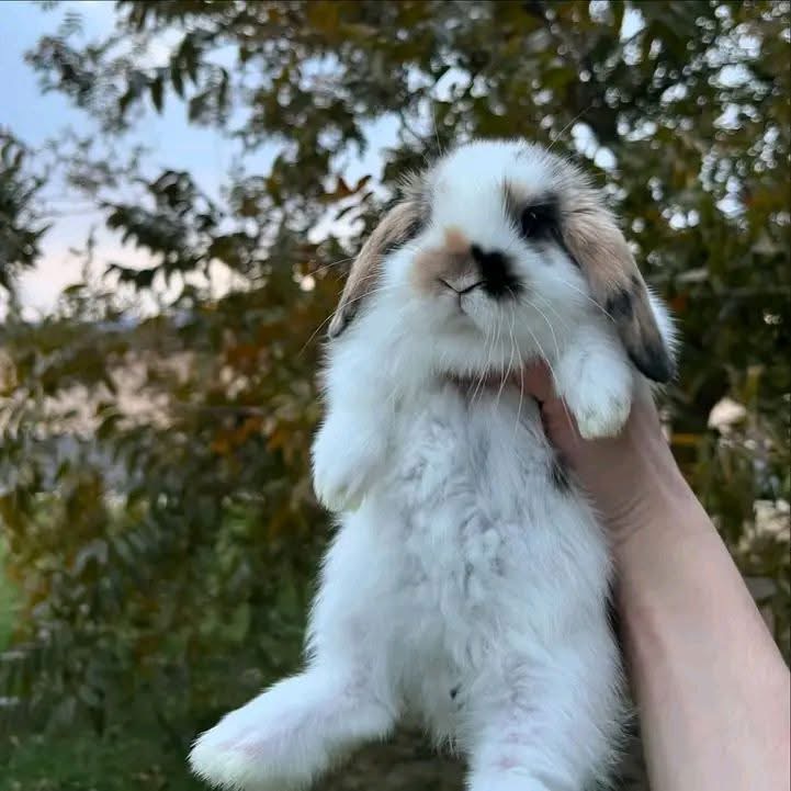 Meet this stunning Broken Tortoise Holland Lop, featuring a beautiful tricolor coat with distinct "harlequin" markings on the face. With its signature floppy ears and wide, curious eyes, this rabbit is the definition of "lop-eared charm." This little one is clearly well-handled and comfortable with people, making it an ideal candidate for a family pet or a companion for someone looking for a social, interactive bunny.