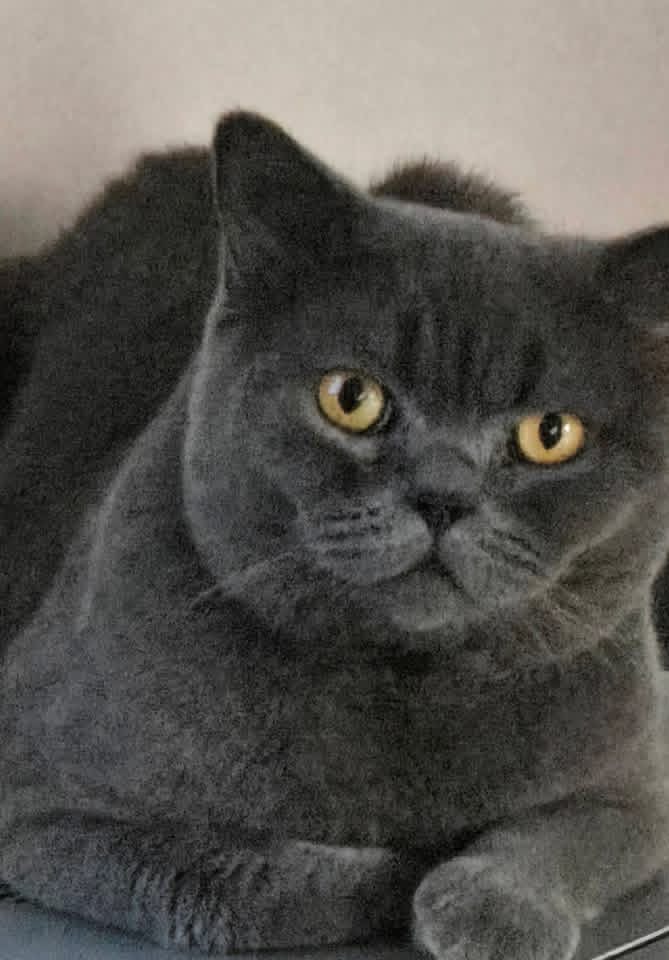 Available for a permanent loving home is this magnificent Blue British Shorthair. As the definitive face of the breed, this cat features the iconic velvet-grey coat and striking copper eyes that have made the British Shorthair a household favorite worldwide.