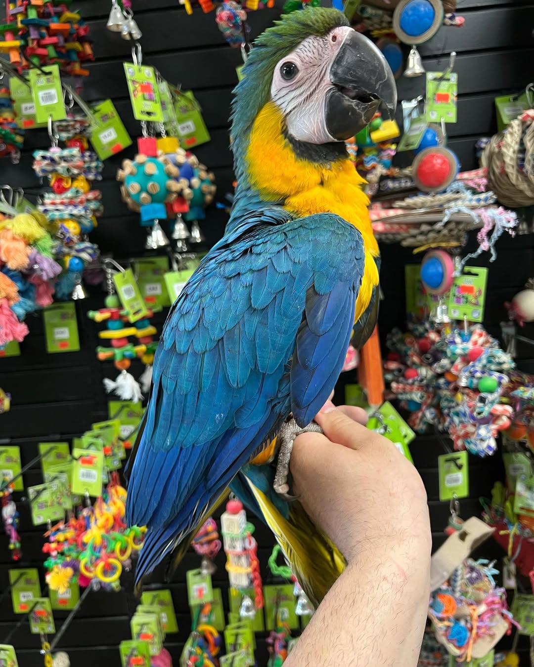 Meet our beautiful Blue and Gold Macaw! This sweet juvenile is currently at the perfect age for bonding with a forever family. Known for their striking turquoise wings and vibrant golden underparts, Blue and Golds are the 'gentle giants' of the parrot world. This youngster is highly social, curious, and already showing a great temperament. Blue and Gold Macaws are incredibly intelligent and capable of learning a wide vocabulary and impressive tricks. If you are looking for a lifelong companion with a big personality and even bigger heart, this is the bird for you