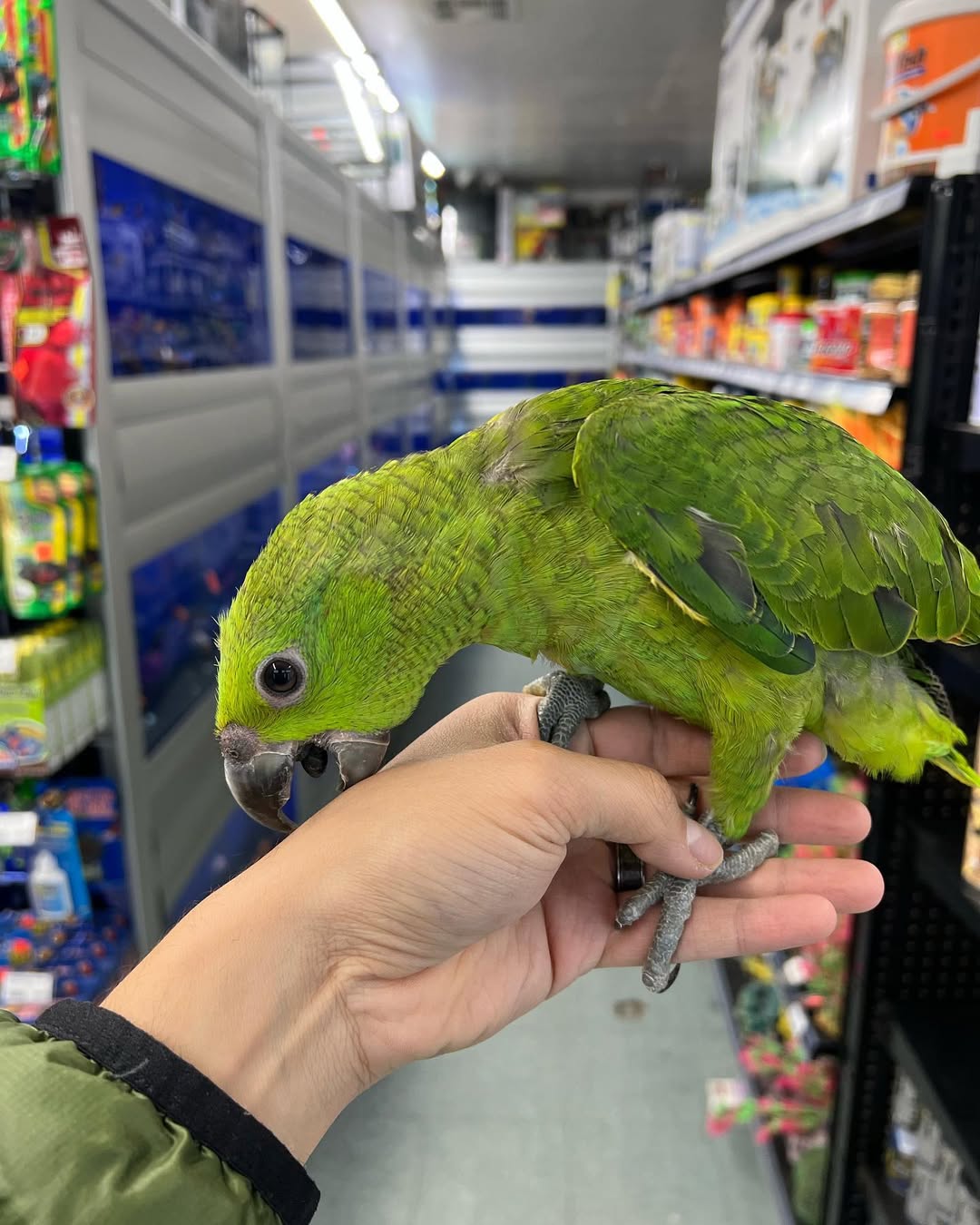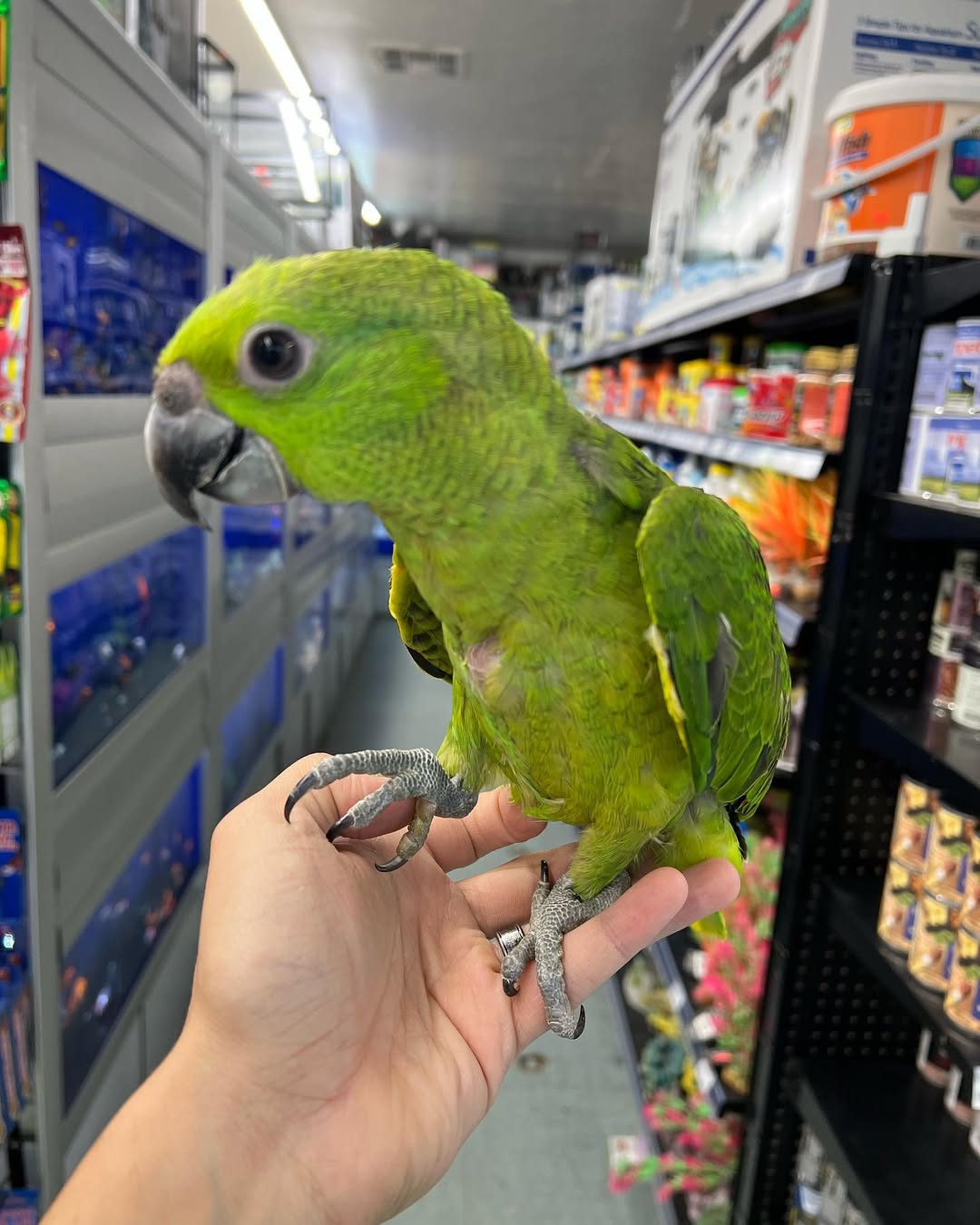 Looking for a large parrot with a calm personality? Meet our Mealy Amazon! Often referred to as the 'Gentle Giants' of the Amazon family, Mealy Amazons are prized for being significantly more easy-going and less temperamental than their cousins. This sweet juvenile is currently in the prime stage for bonding. With their beautiful lime-green plumage and distinctive 'powdered' nape, they are as subtle as they are stunning. Mealy Amazons are excellent companions for those who want the intelligence and talking ability of an Amazon but with a more relaxed, social demeanor