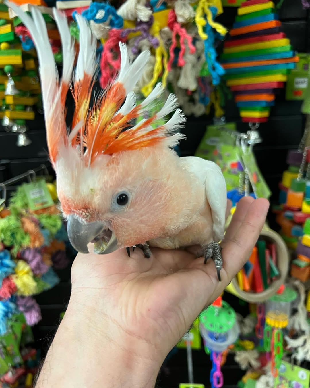 Mimi thrives on high-quality pet food appropriate for their Bird species. Fresh water should always be available.