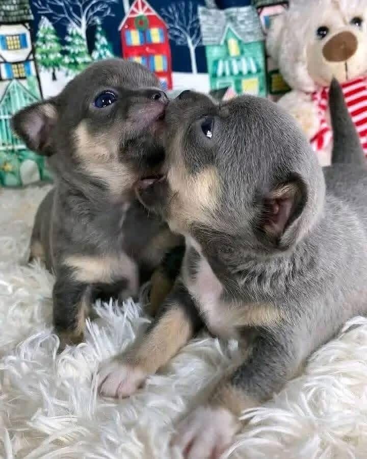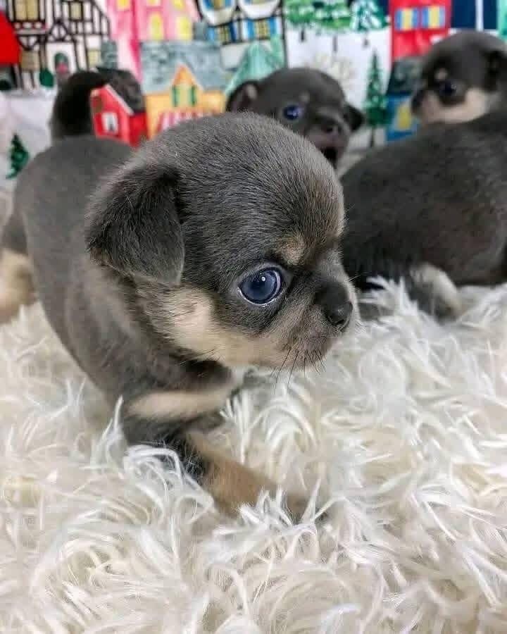 A healthy, small, and active puppy with a sleek, smooth coat and a playful appearance. Coloration: Blue and Tan, or Silver-Grey and Tan points (points on eyebrows, cheeks, chest, and legs)